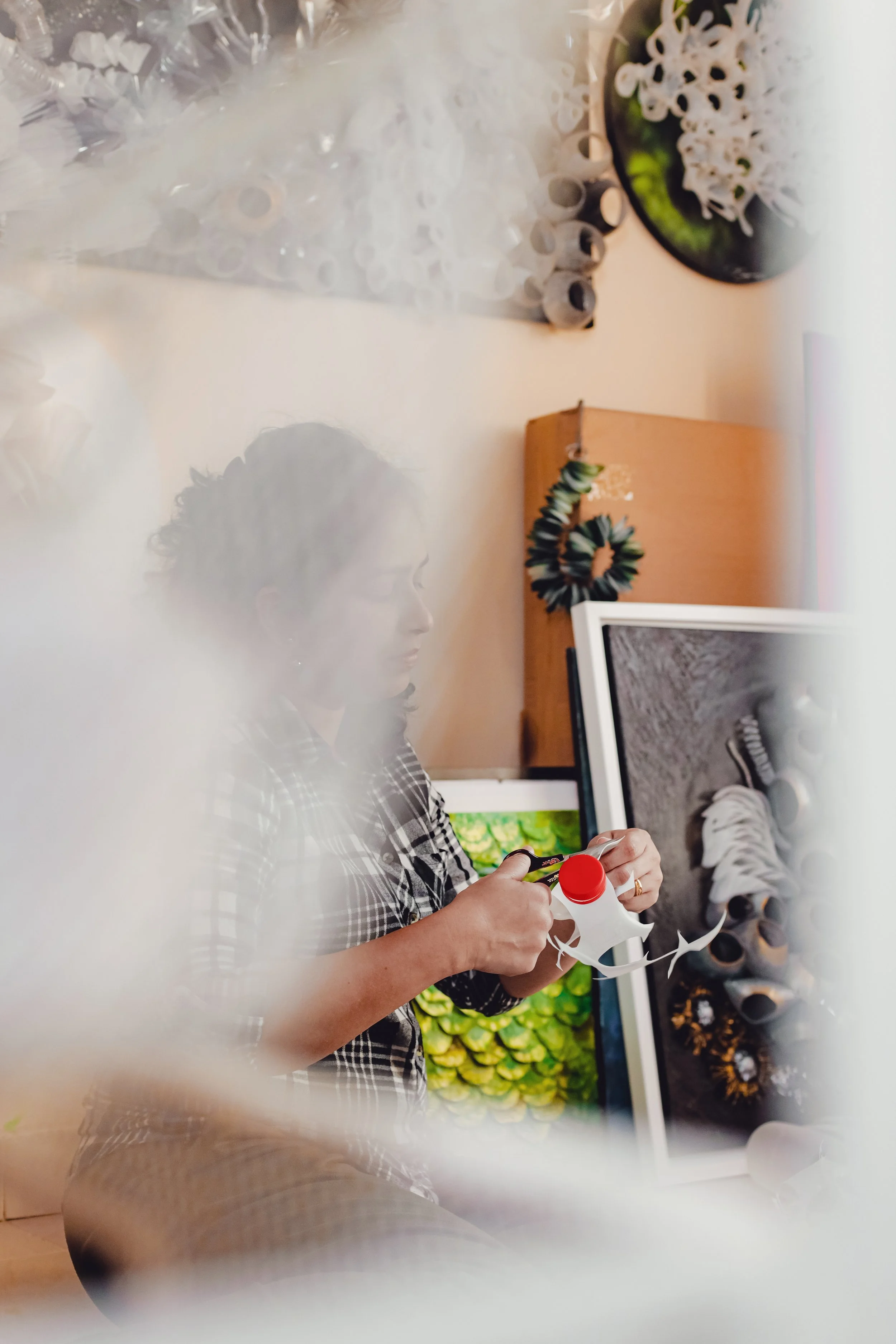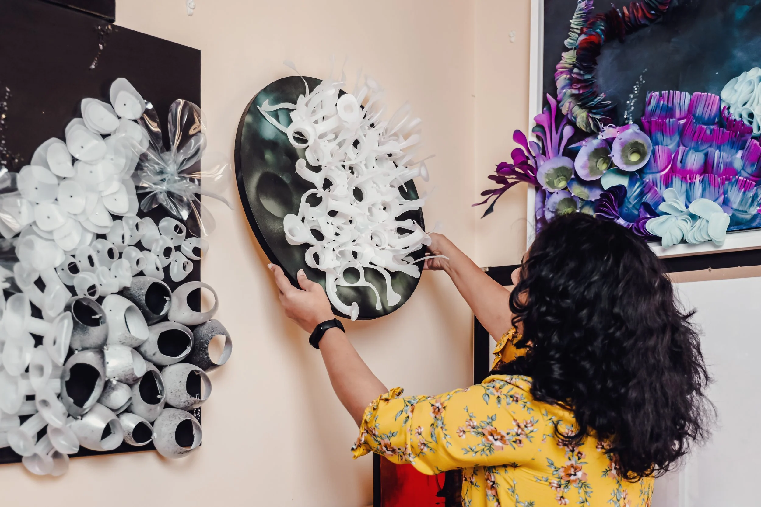 Swapna’s art practice is inextricably intertwined with sustainability and is deeply rooted in the exploration of discarded materials and transforming them into meaningful sculptural artworks. Through the process of deconstruction and reassembly, she aims to challenge perceptions of value and waste, highlighting the beauty and potential of materials that have been overlooked or discarded by society. Her artworks are an expression of sustainability, creativity, and the constant evolution of form. By working with upcycled materials, she not only reduces waste but also celebrate the tactile and transformative nature of these objects. Each work is a dialogue between the past and present, inviting viewers to reflect on their relationship with the objects around them, as well as the impact of consumption and disposability in our world. Her artworks has been exhibited and collected globally, and commissioned by esteemed clients for site-specific installations that merge creativity with impact.